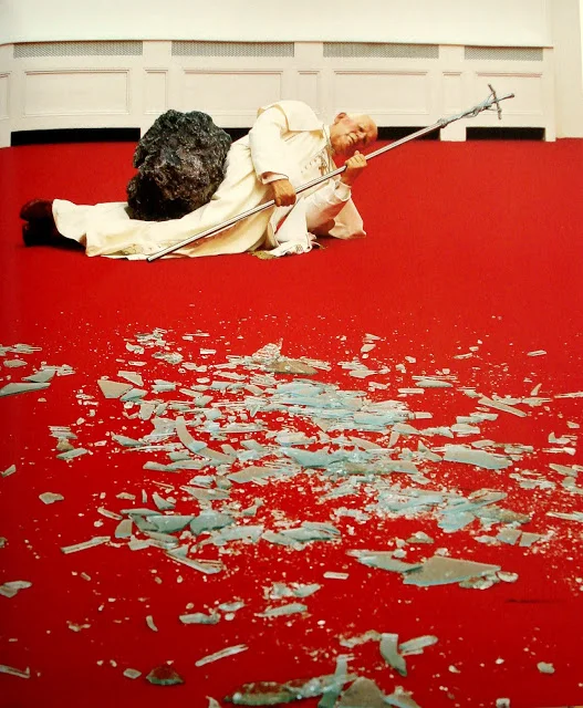 1 week before the Pope’s resignation, the Vatican allegedly received a govt. note stating plans to issue a warrant for his arrest.He’s now begging the Italian President for immunity against prosecution for allegations of child rape.the 1st to resign in 600 years…thanks internet-sculpture by Maurizio Cattelan…. Lady miss kier …www.ladykier.com