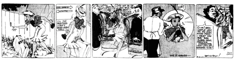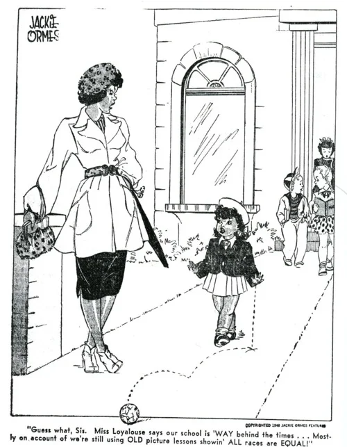 Mrs. Ormes returned to the Courier in 1947 and created a new one-panel strip that lasted 11 years. Patty-Jo ‘n’ Ginger chronicled the lives of a pair of sisters, a short, opinionated, sharp-tongue little girl named Patty-Jo and her older, statuesque sister Ginger. Patty-Jo was also the inspiration of a popular doll produced by Terri Lee Dolls and noted for its realistic Black American features as opposed to the Topsy/Mammy dolls of the day. Only produced for two years, the Patty-Jo dolls are collectors items.