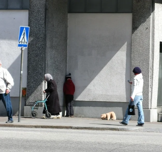 i’m not sure about these….if art is meant to shock and terrify than these are important and def intriguing but i can’t help to think how i would respond …it would def ruin my day and make me feel pranked . this artist wants to be the most famous TROLL artist. what do you think? it scares me that most U.S. folks would just walk right on by without trying to help ( the more realistic looking sculptures). with no free mental healthcare we are conditioned in the U.S. to do that.walk on by. maybe that’s his point….but we see this everyday. the distraught, the lonely, the walking dead. maybe he/she’s from europe ? I do like the Macob …..but the world is so violent,lonely , and confused enough. it’s like the ONION. they were funny until i couldn’t tell the difference between the real news and them ( during bush propaganda overload years) You’d have to live in the U.S. to get what i’m talking about.-lady miss kier