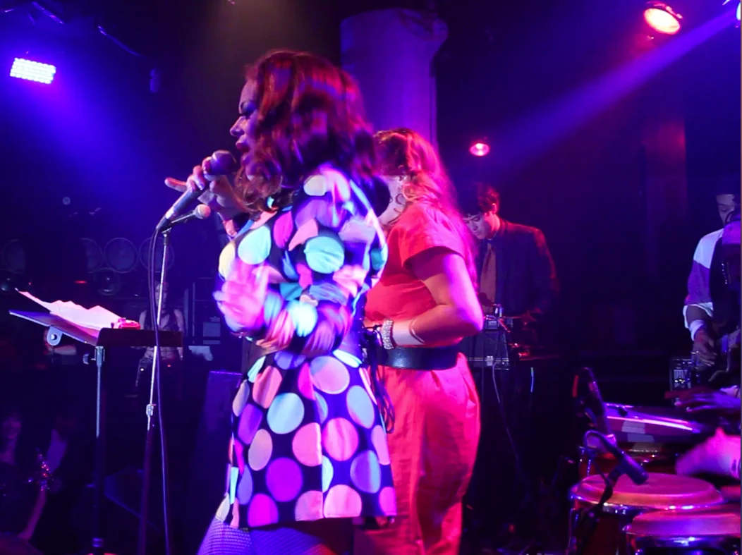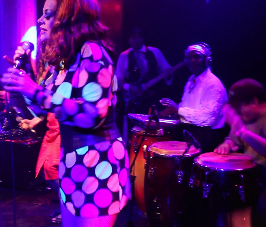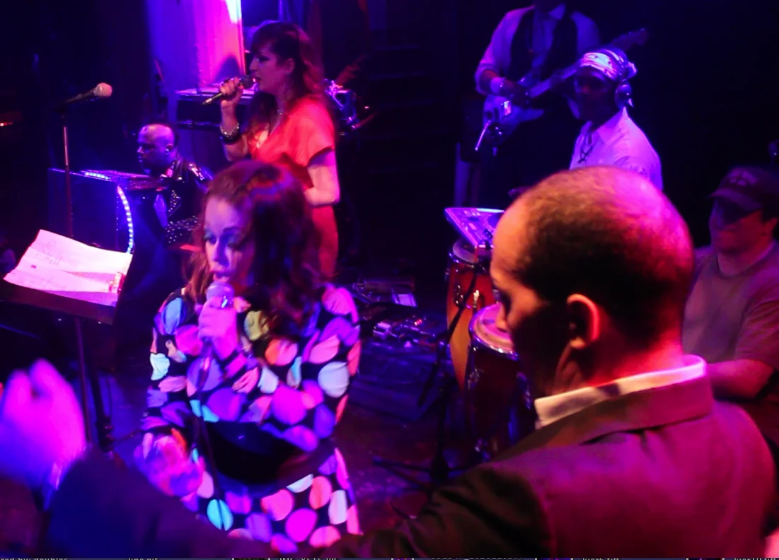 on the first song , i kicked my shoes off & 1 of them landed right on top of Angel’s conga, as u can see in the 2nd photo. It was a new song but several people asked me if it was some rare disco cover ,which i took as a great compliment , especially after following ” last night a dj saved my life” and ”set it off” from the original singers. I hadn’t performed this song before but i knew when i rote it,that it would fit right in with the rest of the party tracks for this special night. It was a treat to be honored with Tiffany from Midnight magic lending her backround vocals. I had sang 4 hours earlier , backing up Coati Mundi, and saw so many familiar faces but had to rush by many, as to not lose my voice for my own set and then a few hours later to backup Midnight Magic in their set. 3 shows in one night….all in honor of legendary Mark Kamins. He reunited many dear friends and brought many of us together again.Big props to Walter DurKacz for MDing the Mark Kamins Powwow band